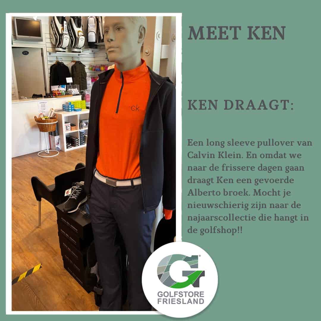 De temperaturen gaan naar benden daarom draagt Ken deze gave pullover van Calvin Klein met een Hollandse kleur. Je kan deze zelfs aan tijdens het WK. De gevoerde winterbroek die Ken draagt is van Alberto. Graag persoonlijk advies? Kom langs in onze golfshop op LeeuwarderGolfclub De Groene Ster.